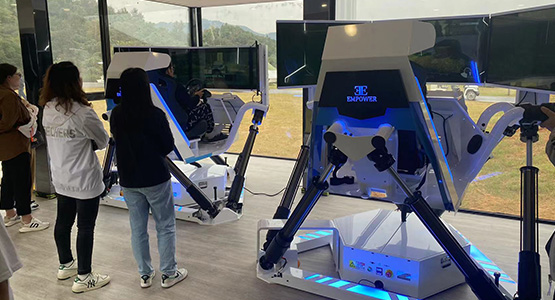 In Eco Park, a 6-DOF full-motion racing simulator blends nature and technology, delivering an immersive single-seat driving experience for eco-tourism.
