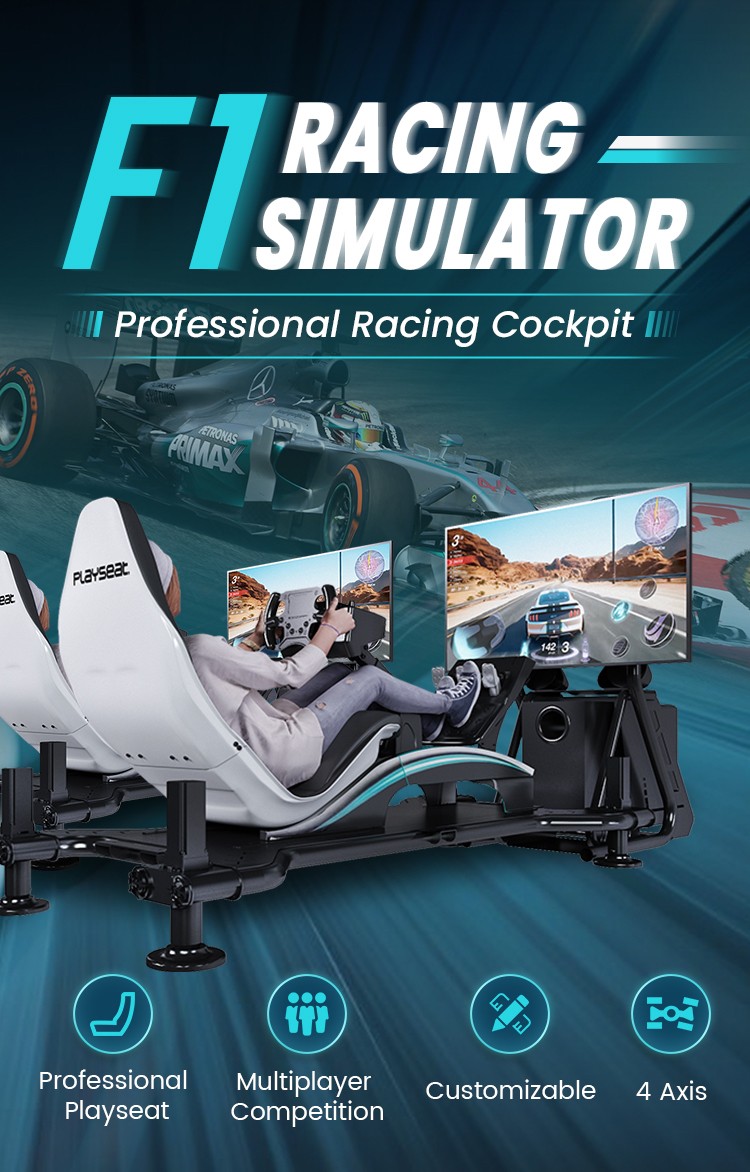 Featuring an F1-style chassis with ergonomic driver position, this simulator brings players closer to the real-world Formula experience. The four-actuator motion feedback and 55inch display deliver thrilling track immersion, making it ideal for e-sports centers, exhibitions, and competitive racing arenas.